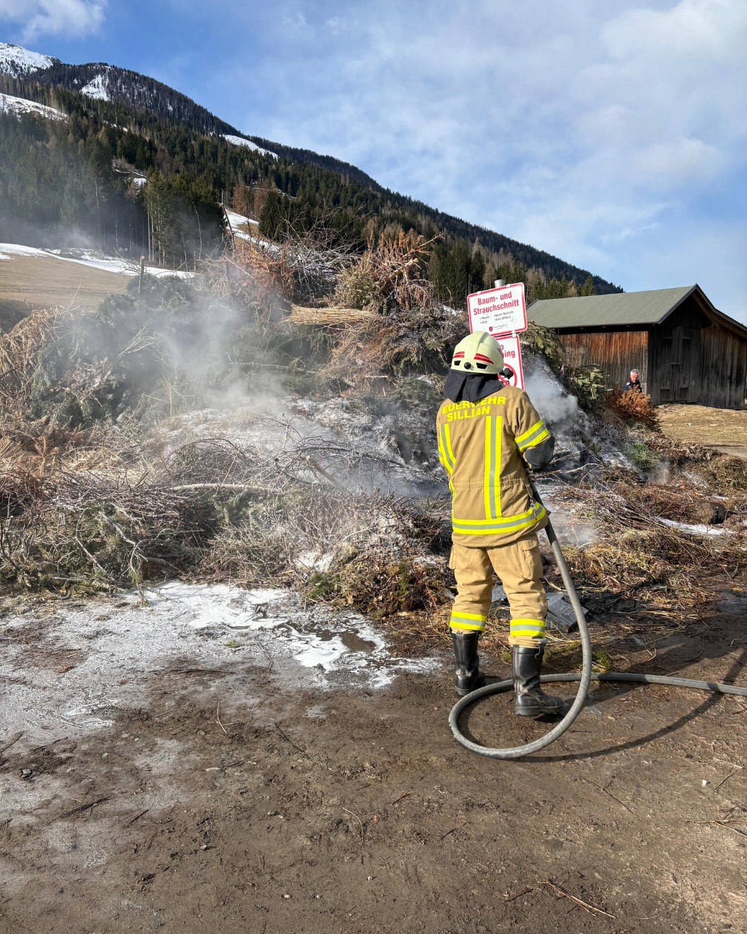 Die Freiw. Feuerwehr Sillian wurde am 31. März 2026 zu einem Brand im Bereich einer Grünschnittlagerung alarmiert. Beim Eintreffen stand bereits ein Teil des abgelagerten