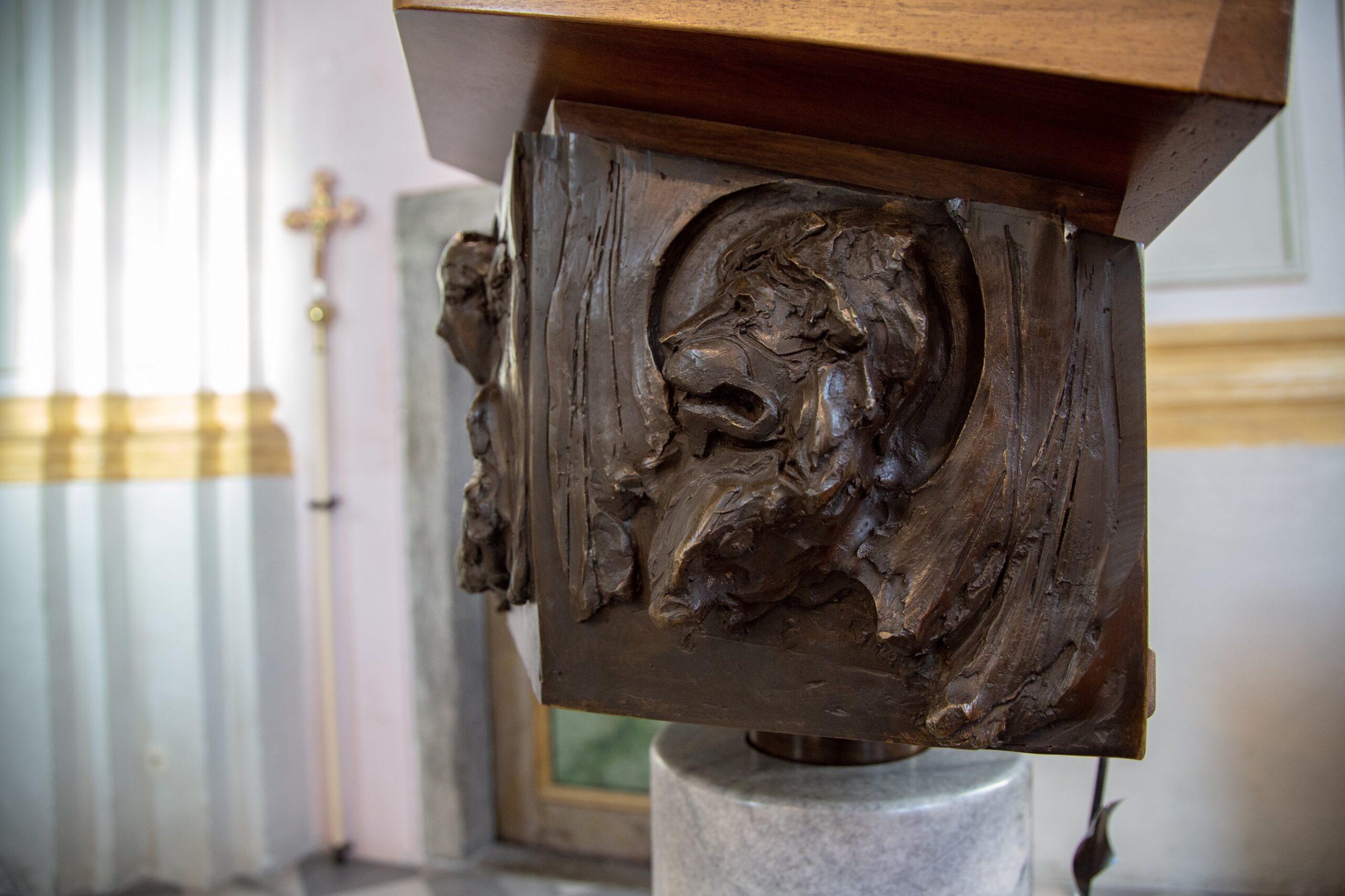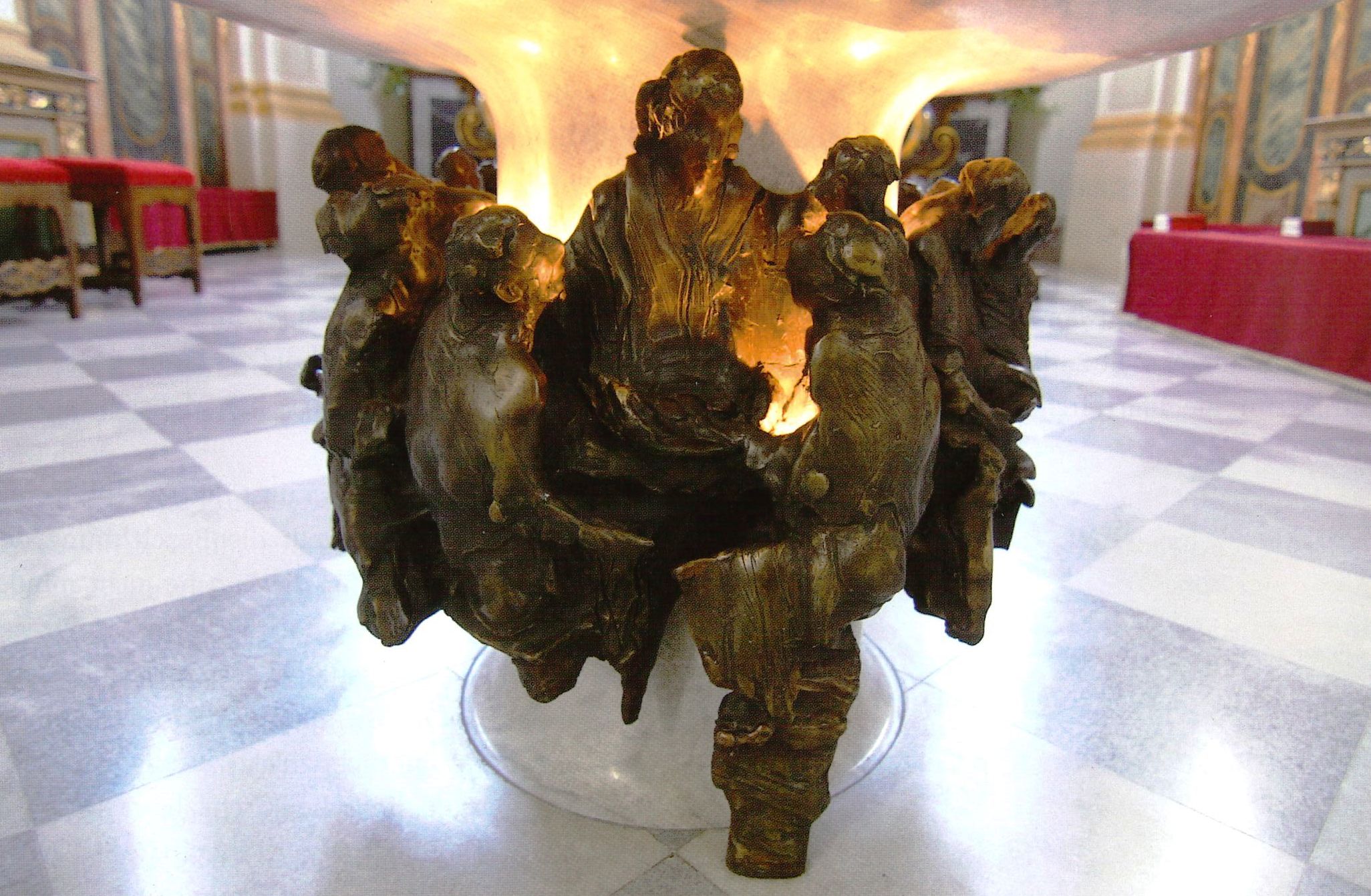 „Letztes Abendmahl“, Bronzeplastik von Jos Pirkner am Volksaltar der Pfarrkirche; Foto: Peter Leiter