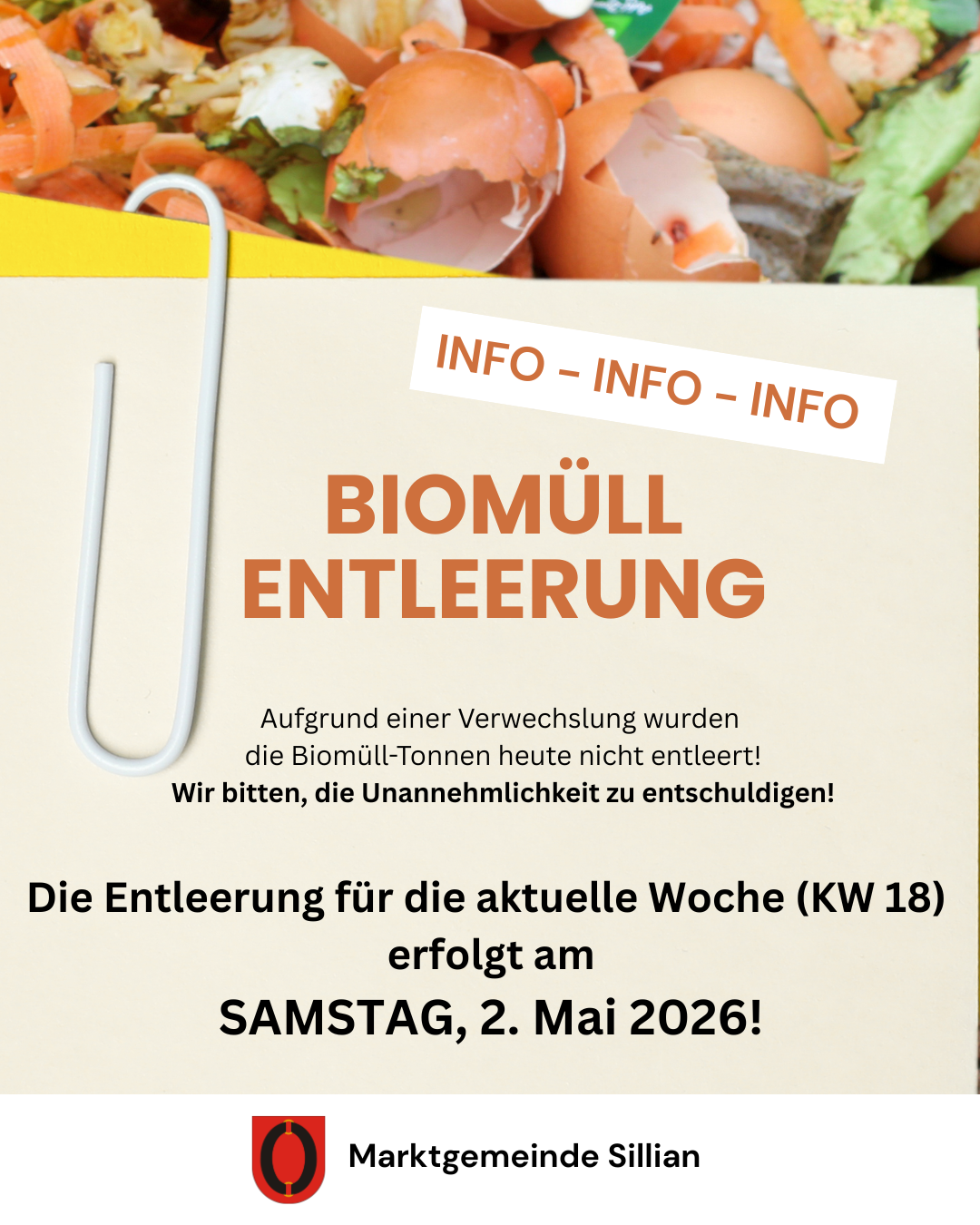 INFO – Entleerung Biomüll – KW 18