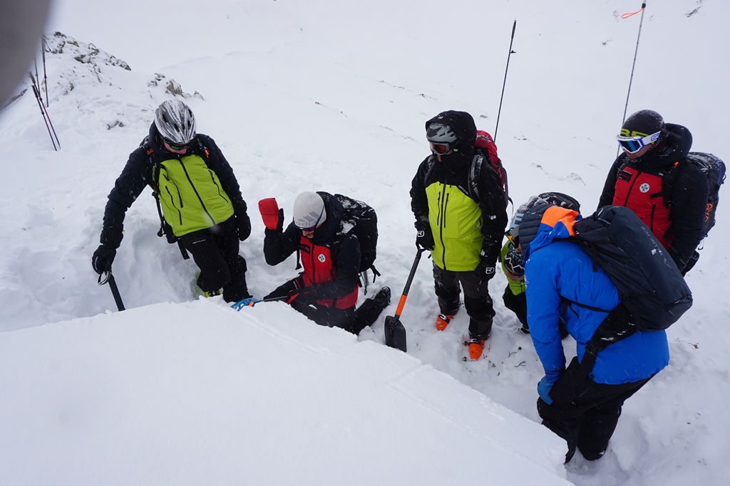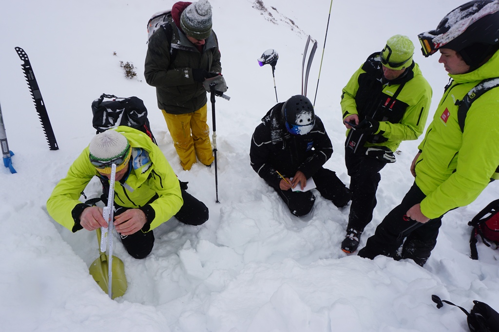 Ergänzt wurde der theoretische Teil durch einen intensiven praktischen Teil mit einer Skitour und umfangreichen Geländearbeiten. Dabei wurden unter anderem die Schneedecke analysiert, Schneeprofile erstellt, Auslösetests durchgeführt und das richtige Vorgehen im Notfall „Lawine“ geübt.